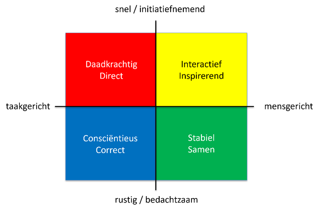 DISC is wereldwijd een van de meest gebruikte methodes voor gedragsanalyse. DISC gaat uit van vier basisstijlen in gedrag, die zijn verdeeld over twee assen. De eerste as loopt van snel/initiatiefnemend naar rustig/bedachtzaam. De andere as loopt van taakgericht naar mensgericht. Zo ontstaan de vier stijlen uit het schema.